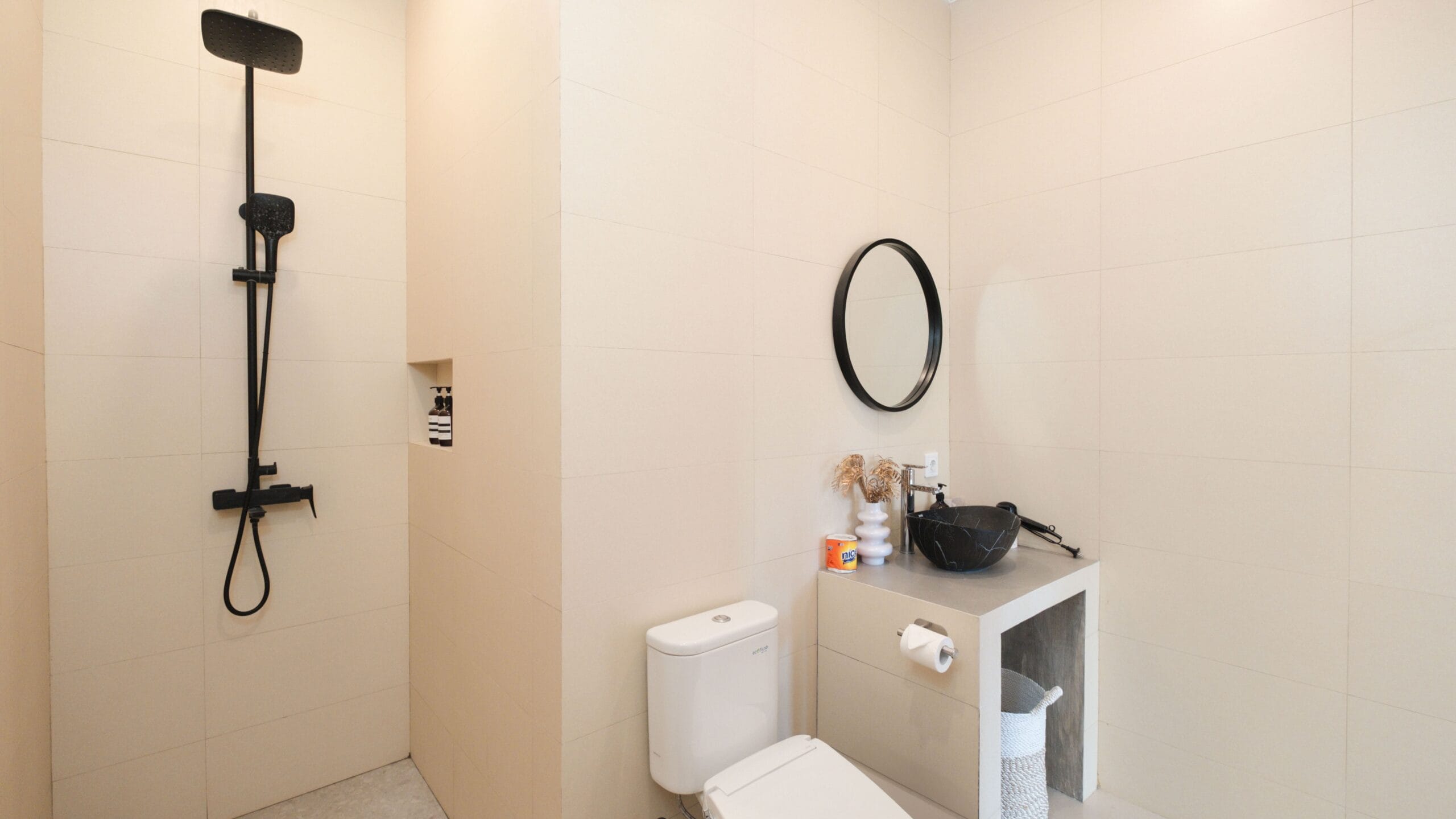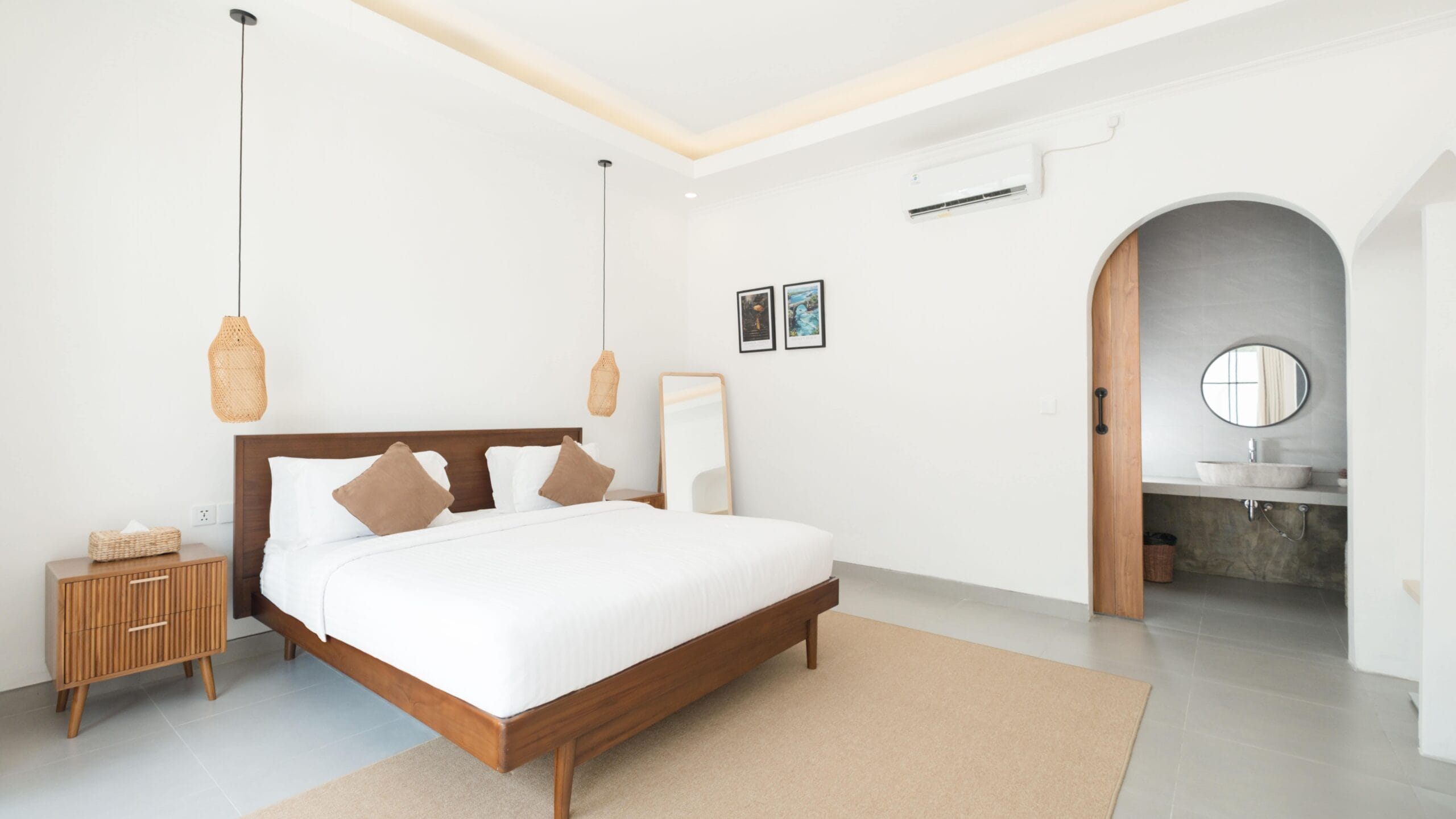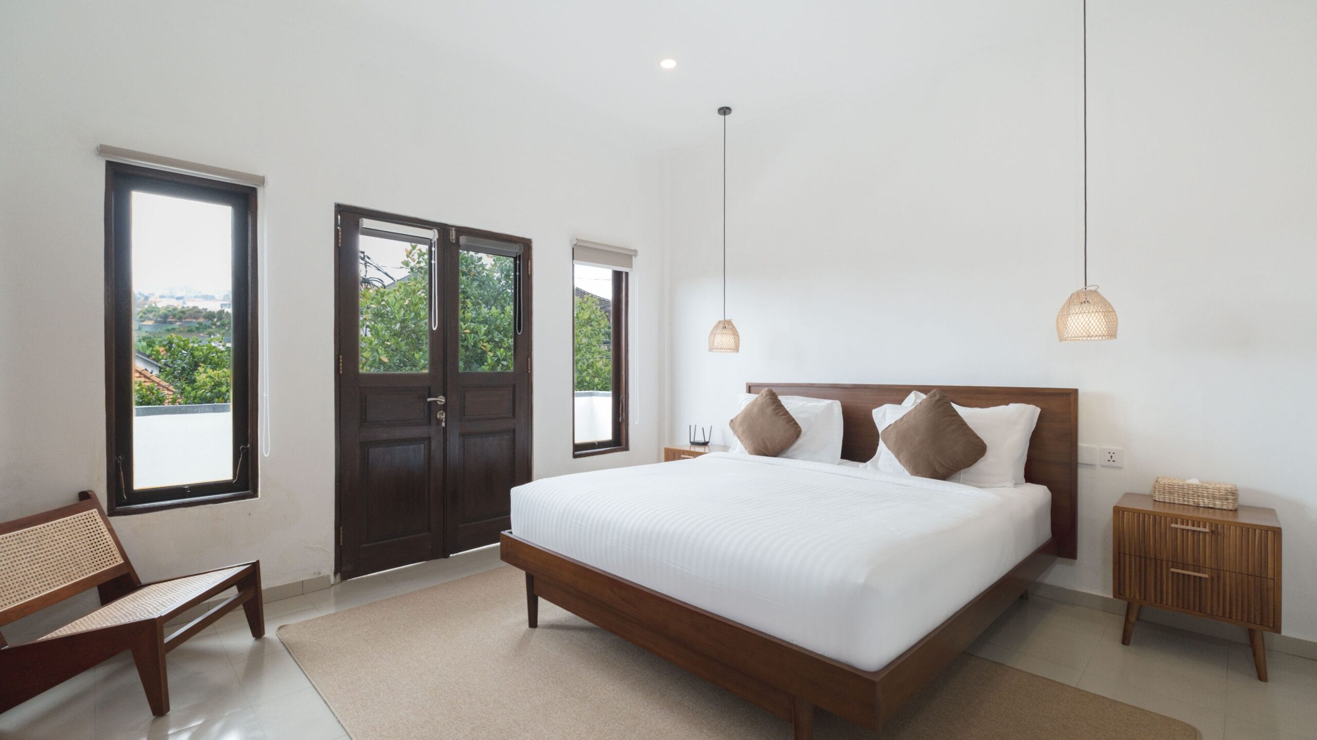 This villa features two spacious bedrooms with king-sized beds, soft linens, and a tranquil ambiance for a peaceful night’s sleep. Each bedroom includes <strong>a private bathroom</strong> with essential toiletries. Large windows allow natural light to flood the rooms, creating a bright and welcoming atmosphere.