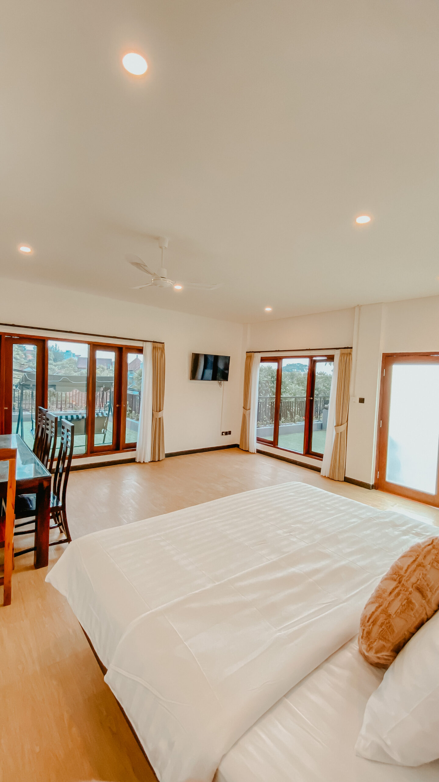• 3 bedrooms with a double king bed each, AC & en-suite bathrooms