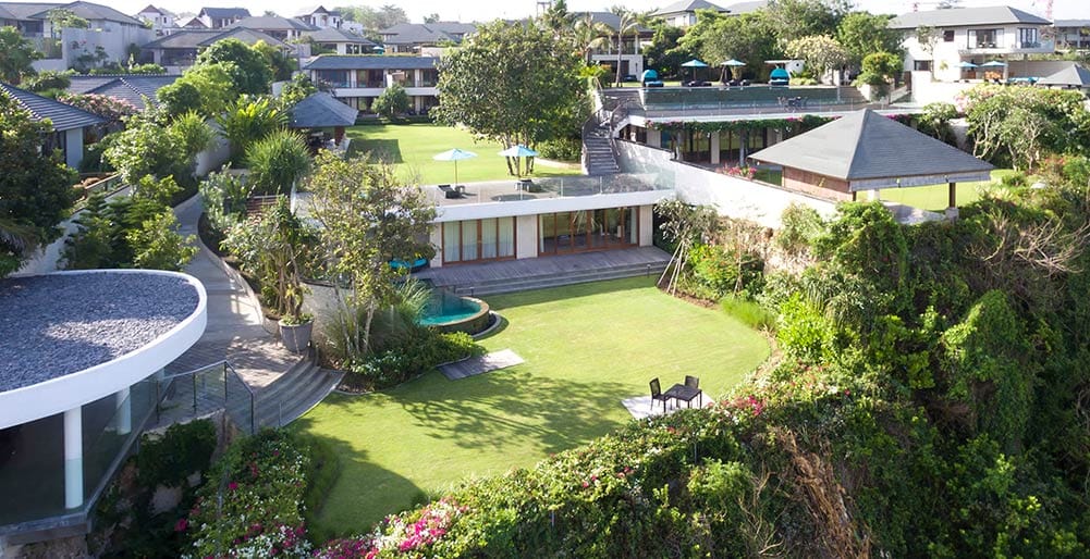 Pandawa Cliff Estate has established itself as a premier Bali wedding villa venue, featuring expansive lawns and an amphitheater-style garden that can host events for up to 250 guests. The property’s clifftop setting creates an unforgettable backdrop for special occasions, complemented by professional staff and comprehensive event facilities.