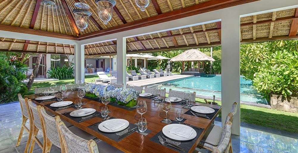 - Poolside dining pavilion and relaxation balé
