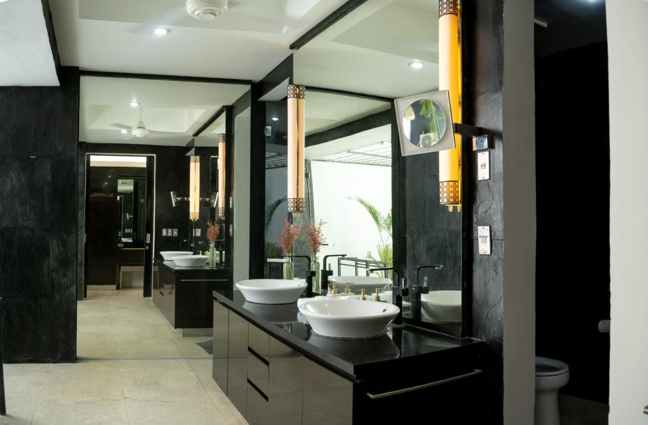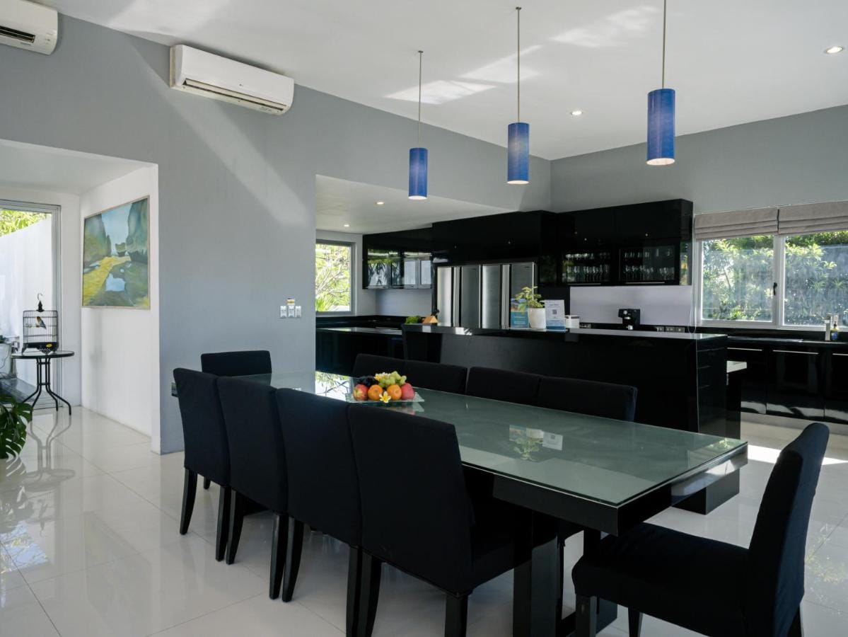 Inside, the villa combines modern comforts with Balinese charm. Air-conditioned bedrooms offer restful retreats, some with ensuite bathrooms equipped with luxurious amenities like bidets, free toiletries, bathrobes, and hairdryers. Each room also has a flat-screen TV and a safe deposit box for added convenience.