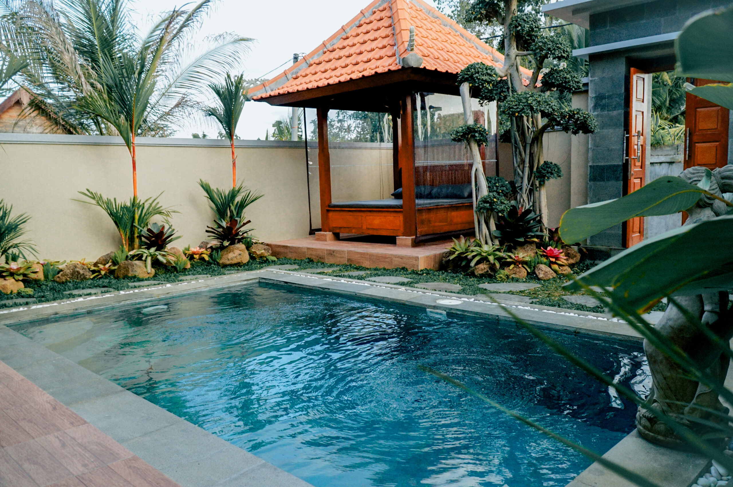 Step outside to your private pool, with a relaxing gazebo right beside it—perfect for unwinding, reading a book, or simply enjoying the calm atmosphere.