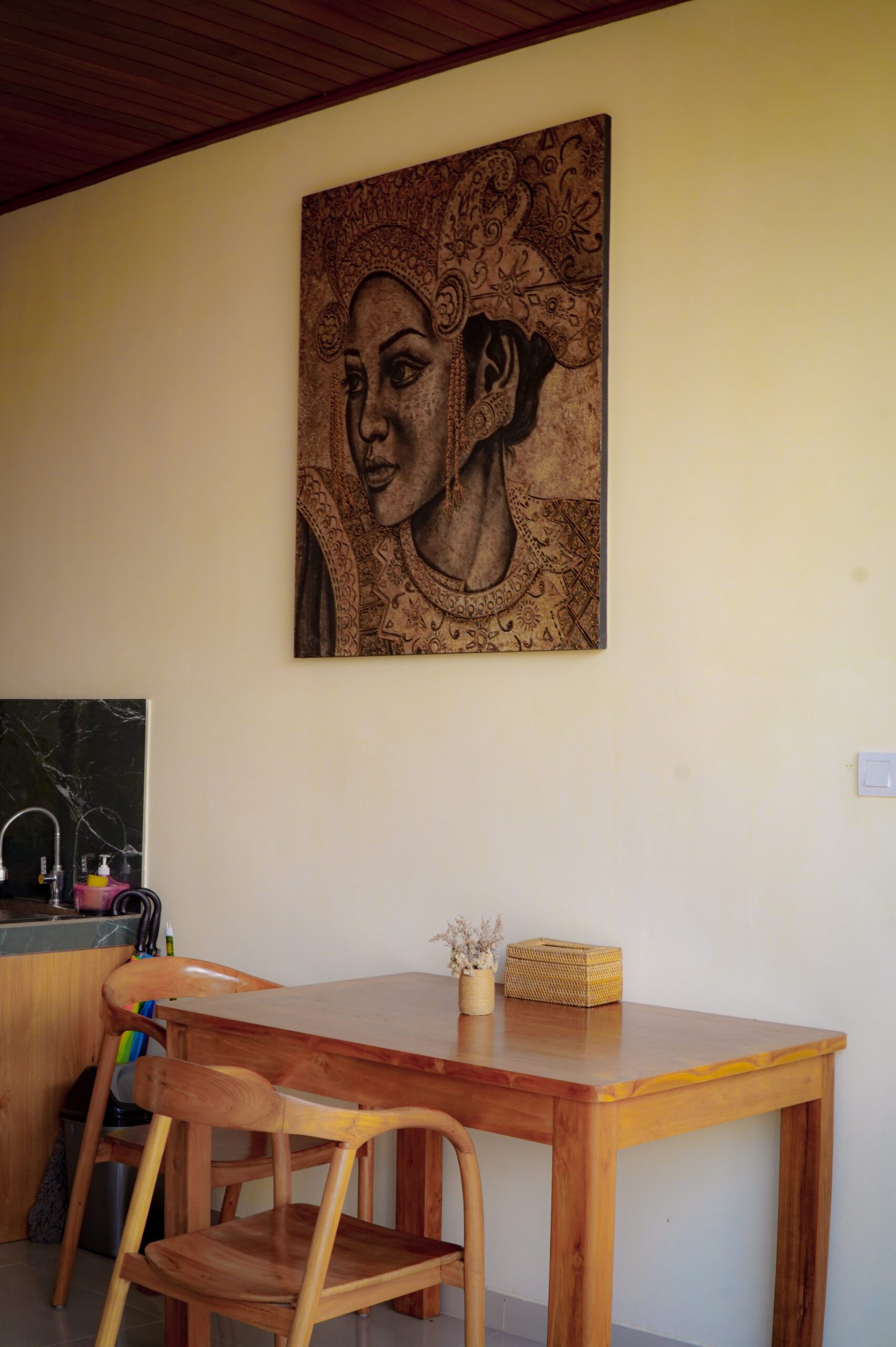 Located close to scenic rice fields, the villa offers a peaceful environment and a comfortable area for walking and enjoying the natural surroundings.