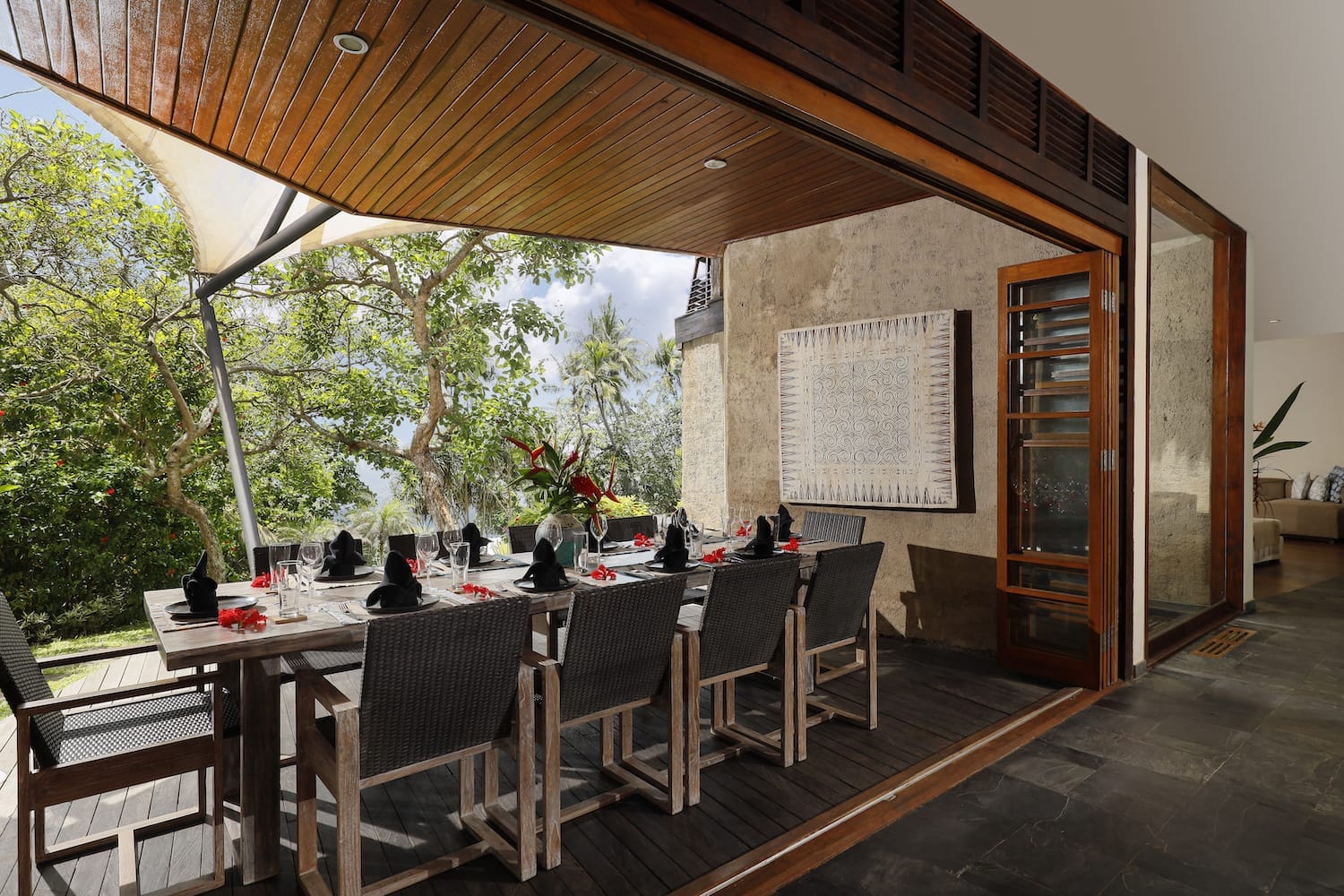 - 5 spacious bedrooms in main villa, each with ocean-view terrace or deck