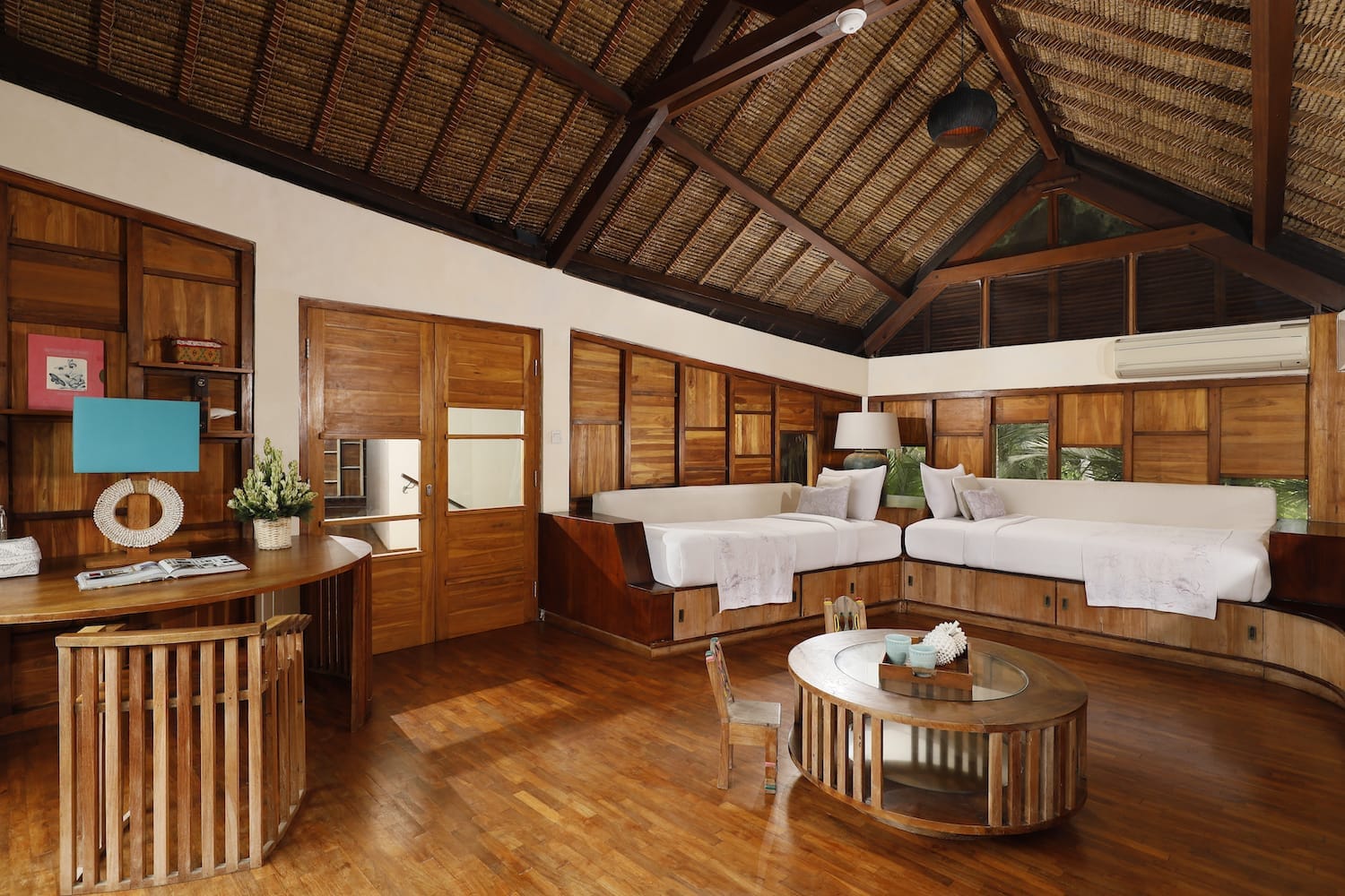 The Cove Bali is a peaceful beachfront villa perfect for a relaxing escape. Located on Bali’s quiet West Coast in a coconut grove, this large villa offers direct beach access and beautiful ocean views. The main villa has five bedrooms, each with its own terrace or deck facing the sea, plus a guesthouse near the pool.