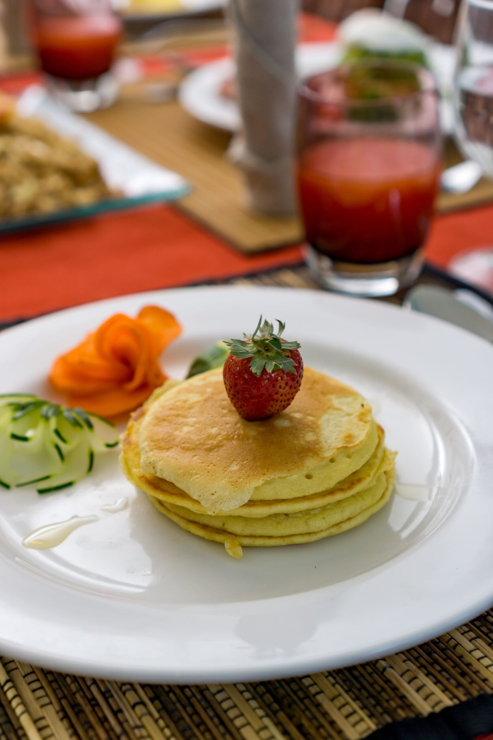 Villa Alun’s common areas are designed for both relaxation and connection, blending indoor comfort with tropical outdoor charm. The air-conditioned living pavilion features full-length glass doors that can be opened to let the breeze flow through or closed for a cool escape from the heat. Inside, you’ll find a cozy media lounge with a home cinema setup and surround-sound speakers—perfect for movie nights. On the other side, there’s a dining area and a fully equipped kitchen that opens onto a pergola-shaded seating area, ideal for morning coffee or casual chats. Outside, the lush garden surrounds a sparkling swimming pool with sun loungers and blue parasols, perfect for soaking up the sun. Stone pathways lead to a tranquil BBQ balé furnished with a dining table, daybed, and grill, making it a great spot for alfresco meals or evening drinks under the stars. Whether you’re lounging, dining, or just enjoying the scenery, Villa Alun’s shared spaces invite you to unwind in true tropical style.
