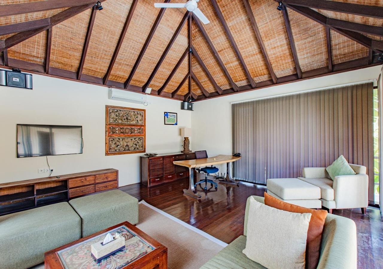 The villa’s design blends modern comfort with tropical charm. Each bedroom is spacious and comes with its own ensuite bathroom, providing guests with privacy and relaxation. The living and dining areas are open and airy, featuring a fully equipped kitchen with everything you need for a comfortable stay, from a microwave to a gas stove and refrigerator. Whether you want to prepare meals or have your personal chef cater to you, the villa offers a seamless experience.