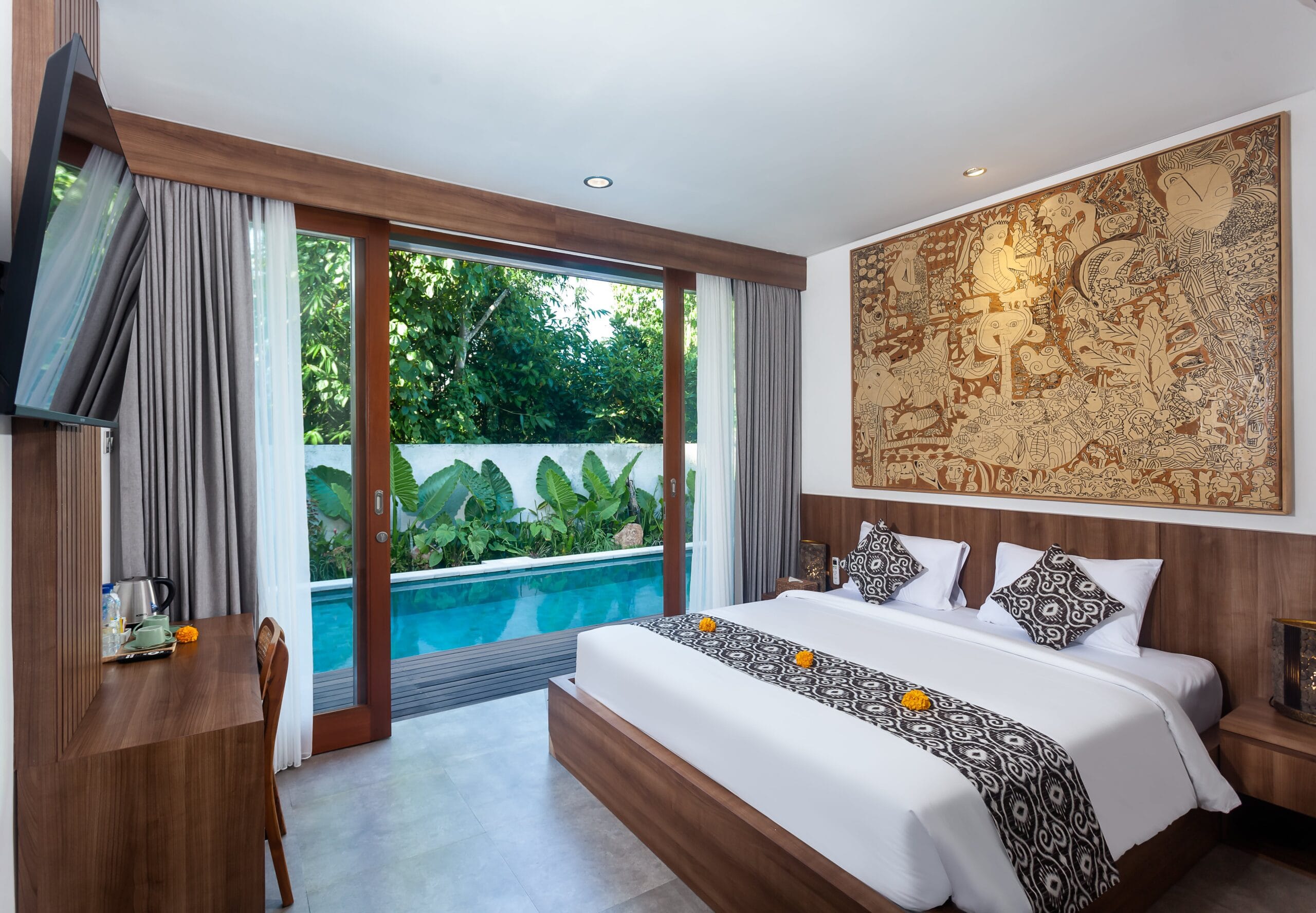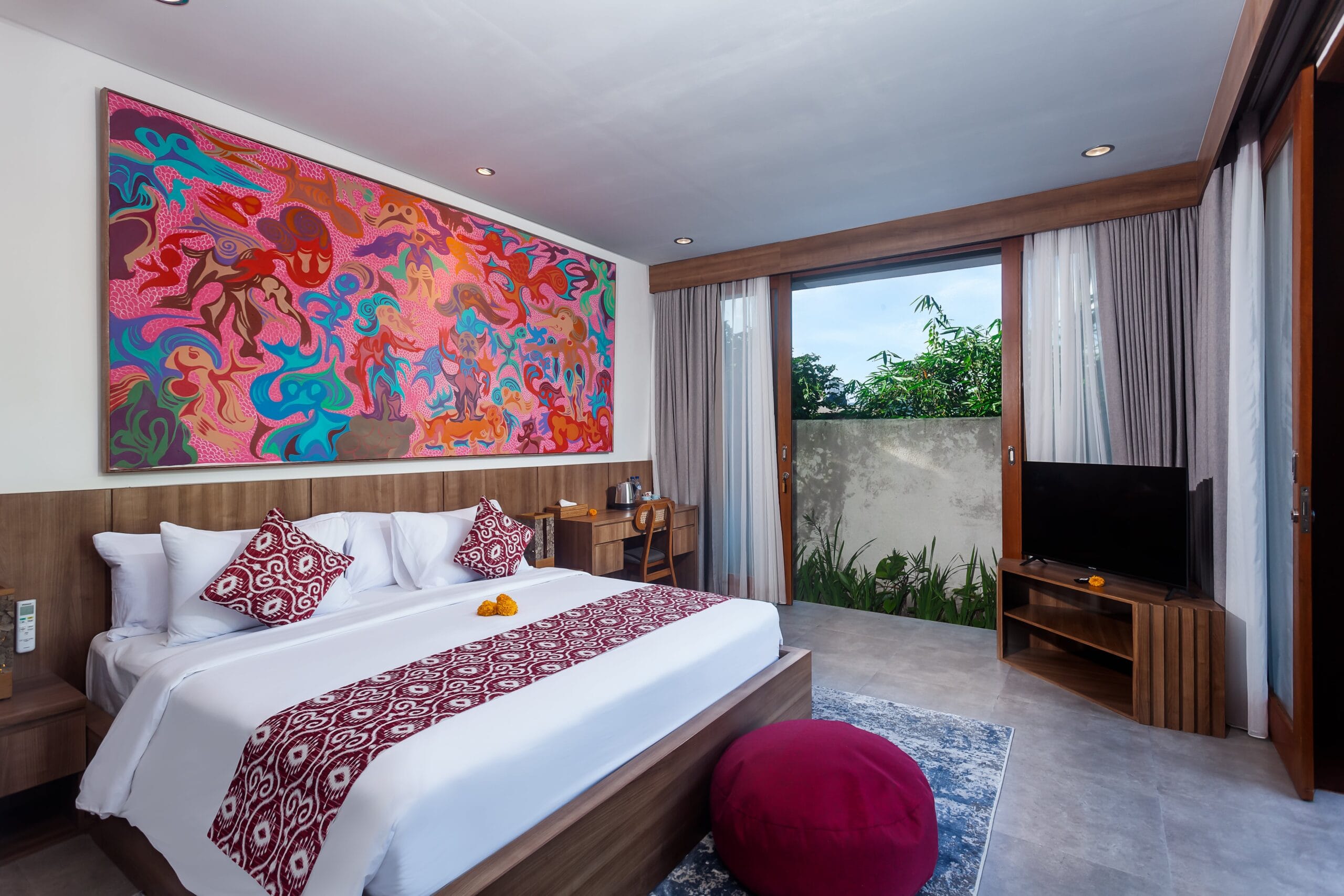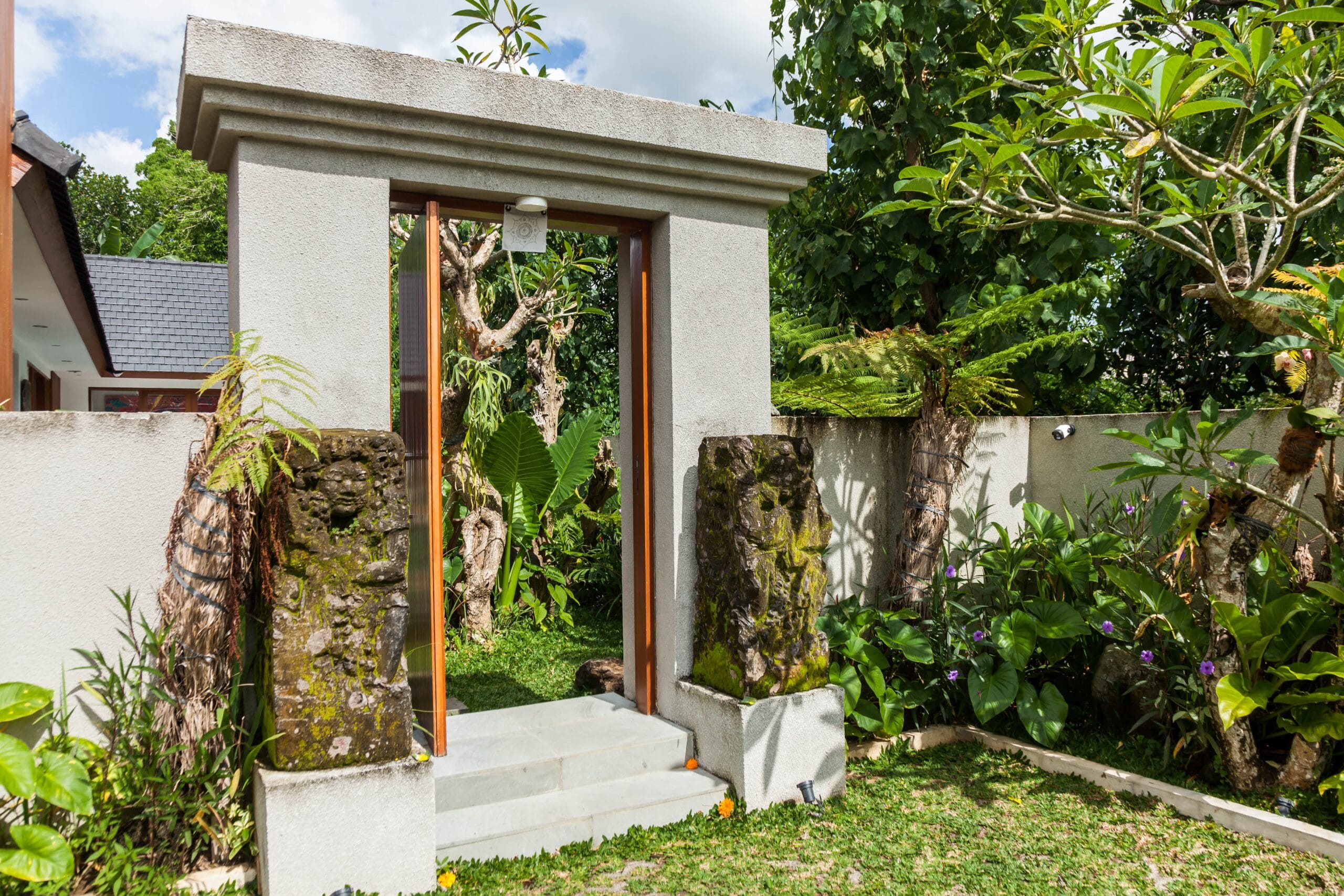 Villa Langon Ubud is a brand new villa located in the southern part of Ubud. It is approximately 7 kilometers from the central Ubud area. Surrounded by local residences and a river, the villa offers a serene and comfortable environment for guests. As you enter the villa area, you will be greeted by several terracotta artworks adorning the walls. Along with natural stone crafts designed by the owner.
