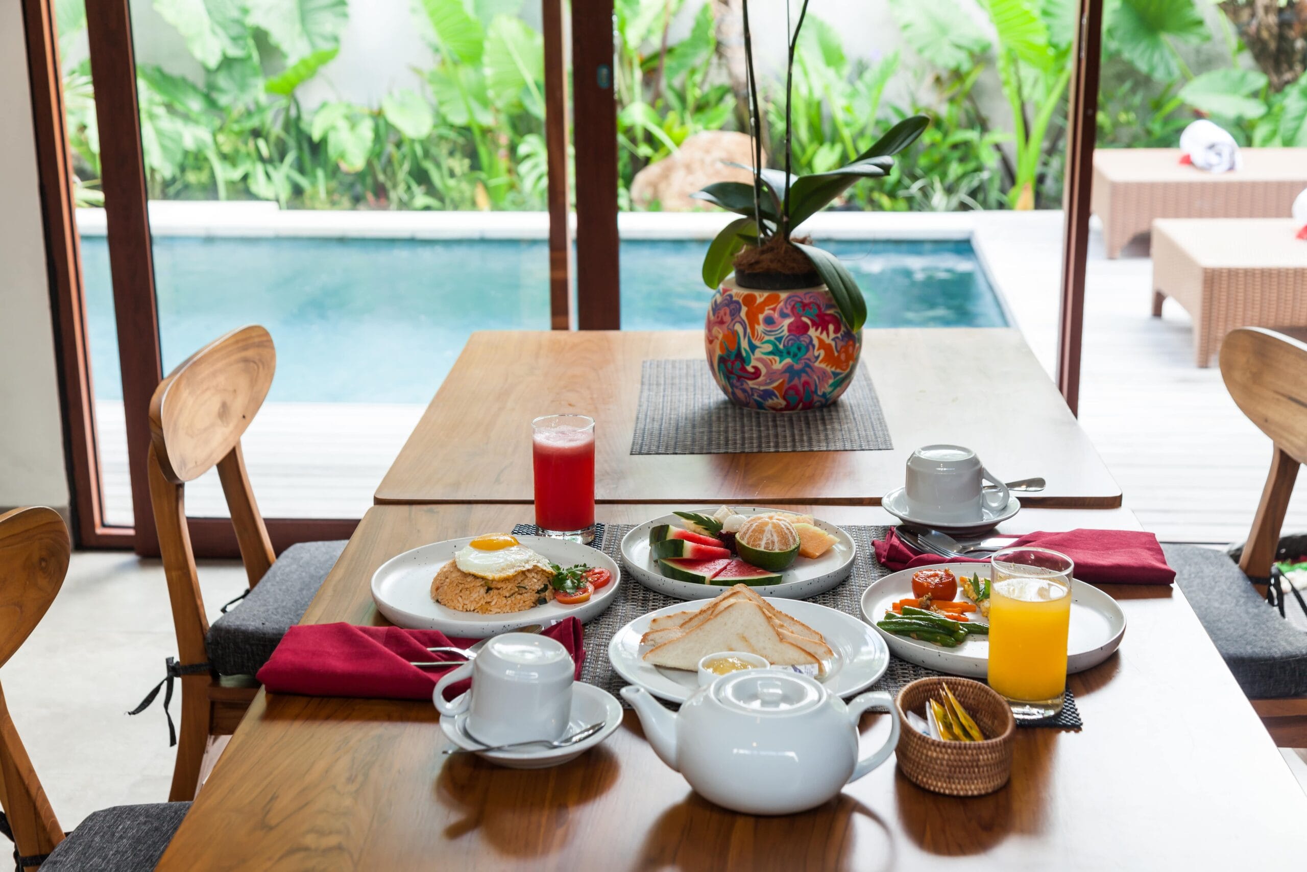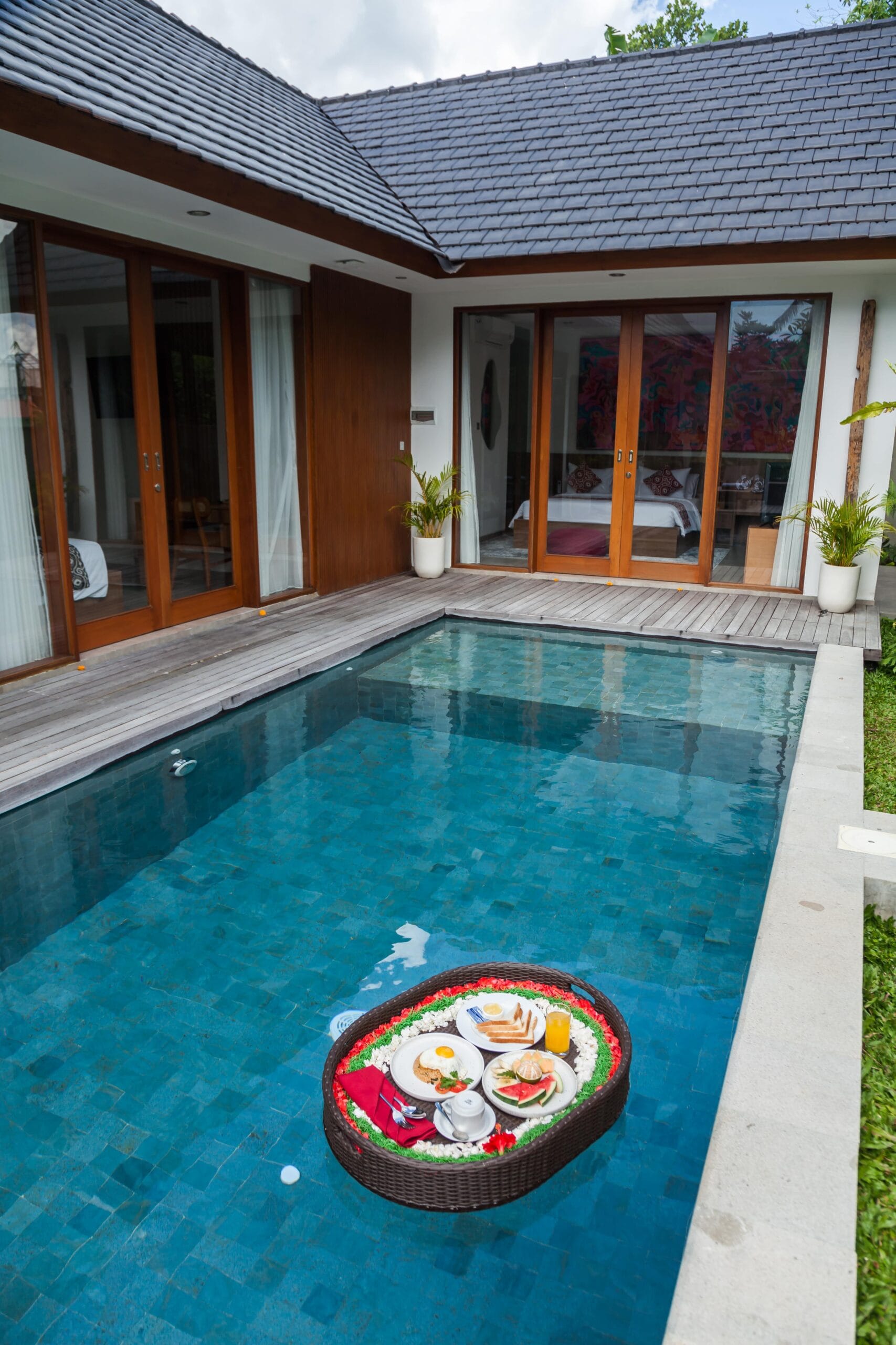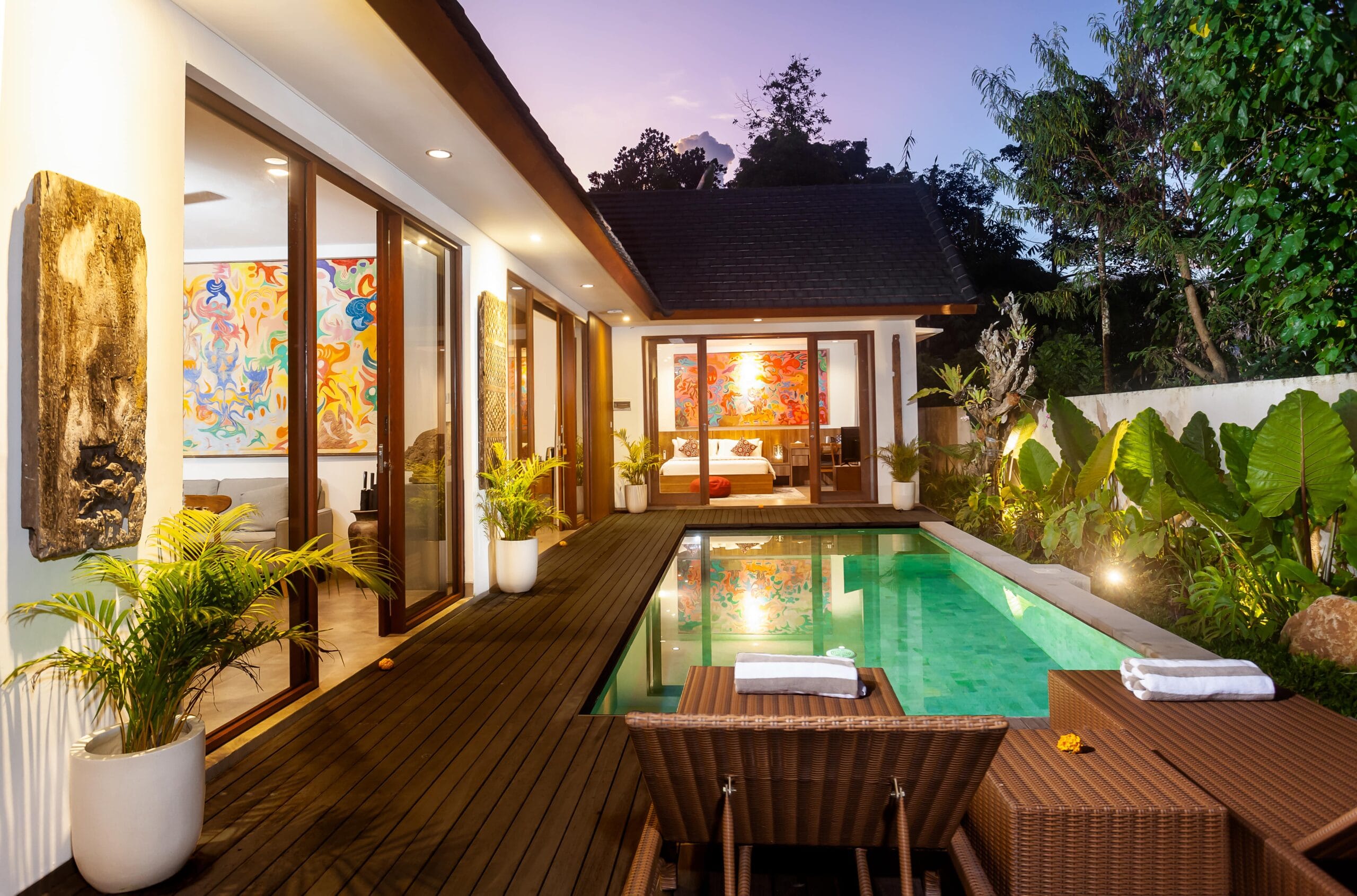 Villa Langon Ubud is a brand new villa located in the southern part of Ubud. It is approximately 7 kilometers from the central Ubud area. Surrounded by local residences and a river, the villa offers a serene and comfortable environment for guests. As you enter the villa area, you will be greeted by several terracotta artworks adorning the walls. Along with natural stone crafts designed by the owner.