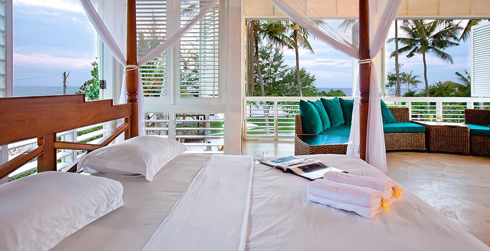 As one of the most impressive luxury villas near Keramas, Villa Puri Nirwana features six lavishly appointed bedrooms, each furnished with super-king beds and complemented by elegant en-suite bathrooms. The villa’s beachfront location provides uninterrupted ocean views from various vantage points, including the private pool and outdoor living areas.