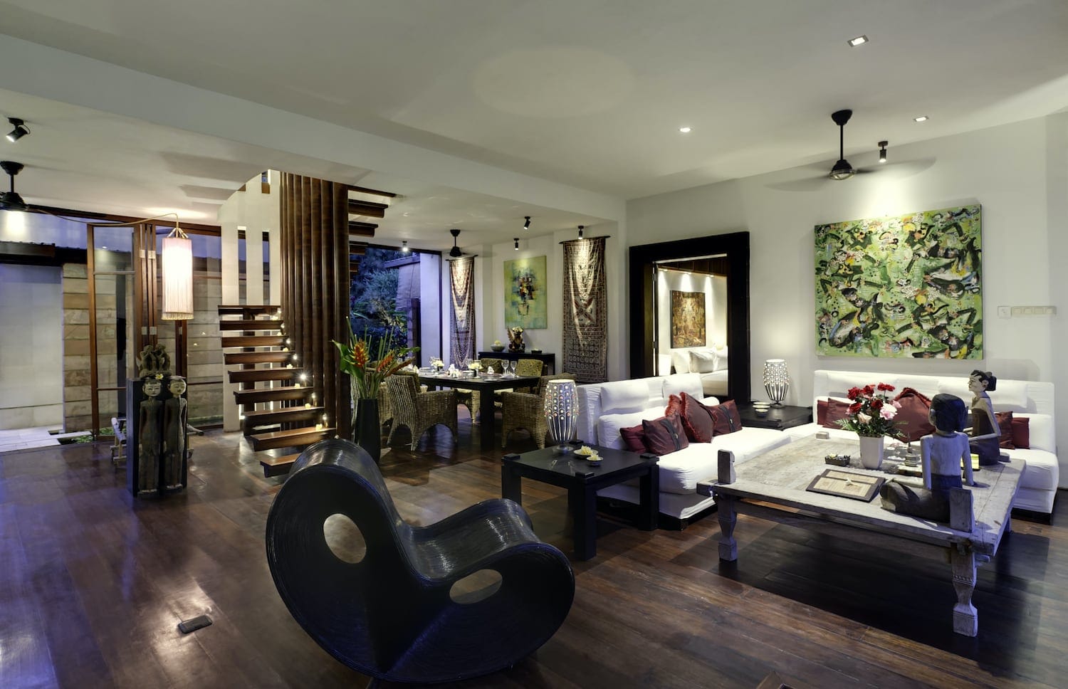 - Expansive lounge area with traditional Javanese elements