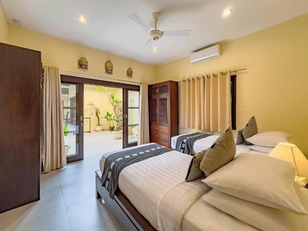 Villa Tresna Seminyak is a stunning 4-bedroom villa managed by Villa Bugis, located in the heart of Seminyak. This Seminyak villa provides a serene escape while being close to the vibrant attractions of Bali. With Double Six Beach and Seminyak Beach nearby, Villa Tresna Seminyak offers the perfect blend of tranquility and convenience for families and groups looking to enjoy both relaxation and local culture. Guests at Villa Tresna can look forward to a private pool, lush garden views, and a rejuvenating hot tub for ultimate comfort.