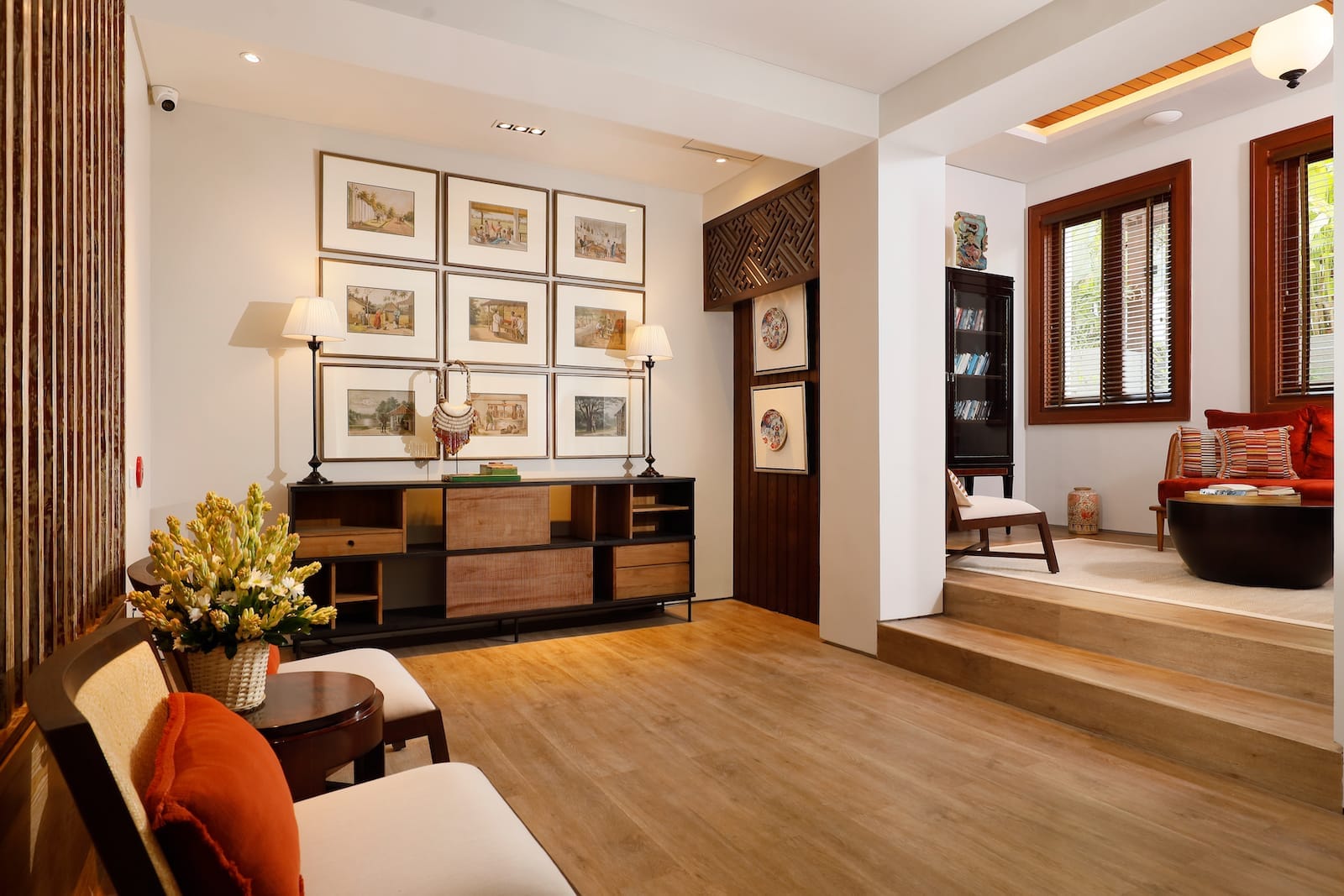 Shared areas include a large main pool that overlooks the cliffs and a restaurant with sweeping views of Uluwatu, creating an unforgettable dining experience. The villa also has quiet spaces, like the library, where you can relax and enjoy a moment of peace. Each villa is filled with thoughtful touches such as Balinese woodwork, garden views, and private pools in select rooms. Plus, all rooms include modern comforts like Smart TVs, WiFi, and spacious wardrobes, ensuring a convenient stay.